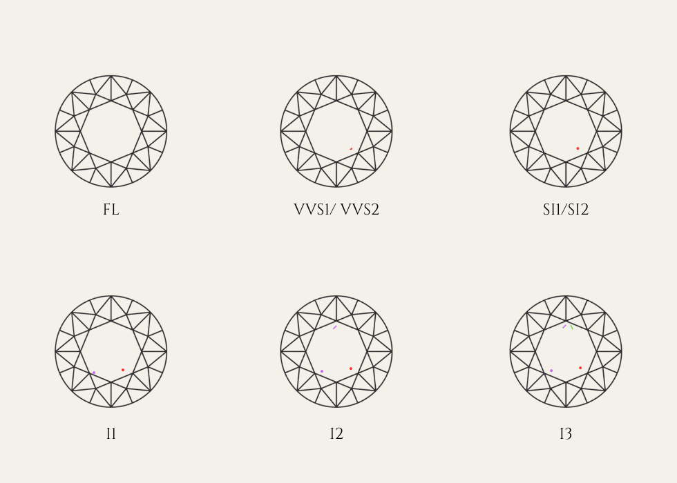 The quality of diamonds ranges from completely flawless to very stained diamonds. The highest diamonds are ranked as FL or completely flawless to WS1/WS2 to SI1/SI2 to I1, I2 and I3 where I3 is the least clear diamond.